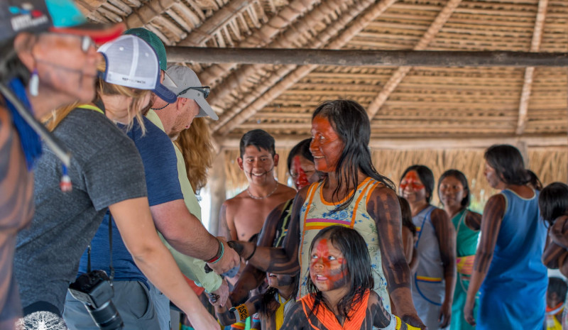 Guests explore the Kayapó community, hike in untouched jungle trails, swim in the crystal-clear Iriri River, and observe an astonishing variety of Amazon wildlife, including birds, monkeys, butterflies, and more. Visitors also participate in cultural exchanges like traditional ceremonies, body painting, and craftwork.