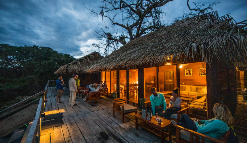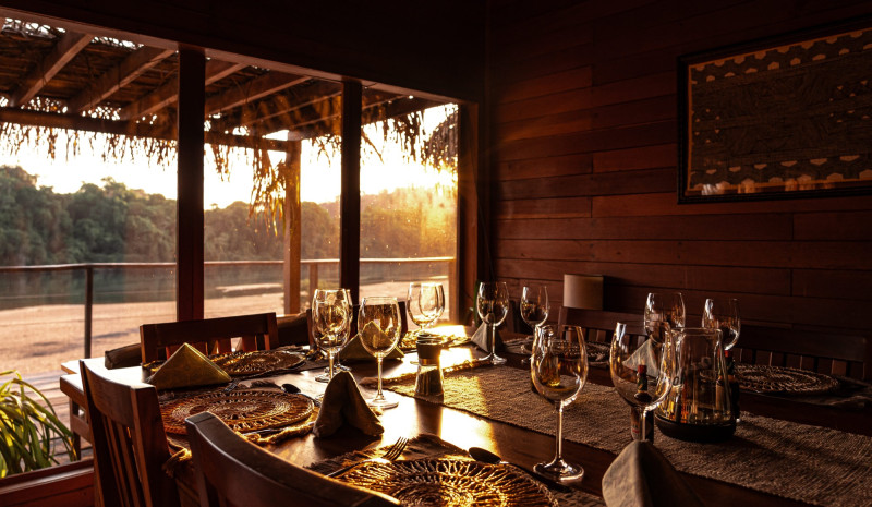The central dining area and bar offer delicious international cuisine and a relaxing setting to unwind after a day of jungle fly fishing. Whether you're targeting arapaima, pacu, or wolf fish, your stay at Kendjam Lodge ensures not only action on the water but comfort and connection in the heart of the Amazon.