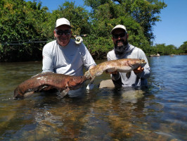 The river is now clear making dry flies more effective. Lots of nice-sized pacu are taking flies from the surface. We also caught many good-sized mantrinxãs on hoppers. With the creeks lower, we also found wolf fish more easily. We had six guests this week, and the three anglers from Japan all landed lots of fish on dries by employing various trout fishing techniques.