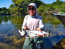 We had a great week with some amazing anglers that brought extensive saltwater experience and knowledge to the jungle. This clearly paid off for them, as the numbers of fish we caught speak for themselves! Water levels were perfect and fish were hungry, a perfect combination. There were plenty of big peacocks, bicudas, and matrinxã, and our anglers even found time to fish on our lunch breaks. It was an awesome week of fishing with some talented anglers. We can’t wait for next year! The highlight of our week was seeing a huge jaguar on the way back to the village that said goodbye to our guests.