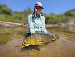 Regarding the girls, they did an awesome job giving no chance for the big peacocks, Matrinxas and Bicudas. Kendjam is becoming one of the girls anglers´ favorite destinations with lots of sight casting opportunities and many different tactics. We see more and more anglers learning about the Brazilian Amazon Jungle fly fishing experience, and some of them want to come back every year. The Highlights of the week were Rachel and Kate, who landed some huge peacocks; and Ray Malone, who landed a 22 plus pounder wolfish, probably one the biggest we have ever seen in Kendjam waters.