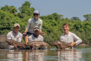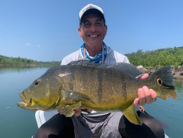 Incredible sizes and numbers of peacock bass were the results.They have a great time with the challenging Rubber Pacu with nymphs!
