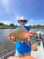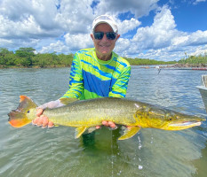 The pinnacle of the week was undoubtedly the rare capture of a Pacu Capivara, a species nearly extinct in Brazil. This remarkable event added an extra layer of excitement to an already thrilling week. Another incredible highlight was the number of predator fish attacking smaller species when hooked. This week, we witnessed two wolf fish attacking a peacock bass, a monster bicuda eating and jumping with a smaller bicuda, and a monster redtail catfish trying to eat a peacock bass. Last but not least, another wolf fish smashed a small matrinxã! Truly wild!