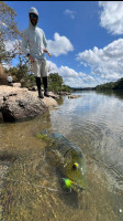 • Peacock bass stole the show with multiple giants chasing poppers and streamer patterns in shallow channels. Their explosive surface strikes drew cheers and wide-eyed wonder.