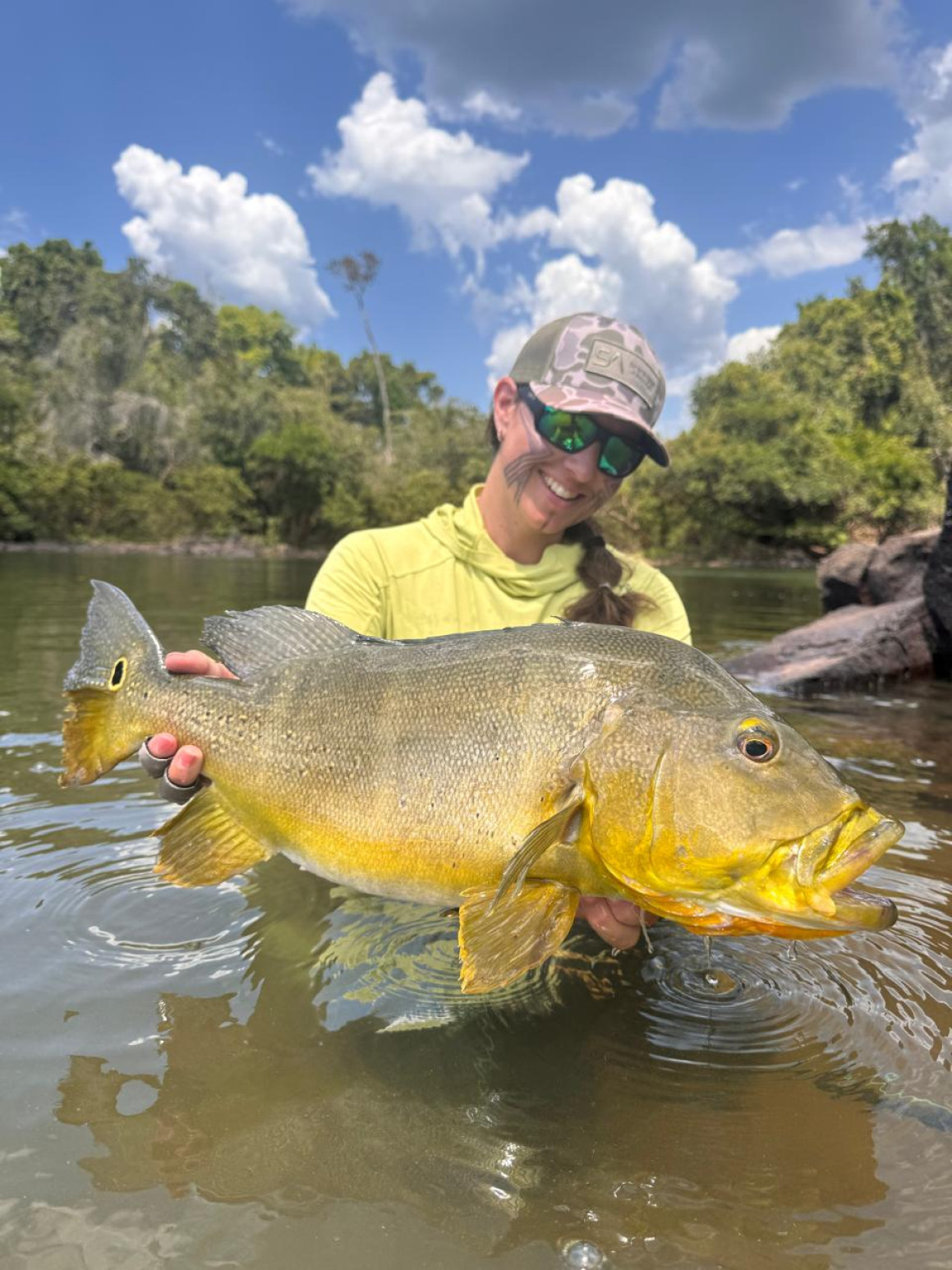 I was lucky enough to spend two weeks at Kendjam Lodge this past season, fishing the Iriri each day with newfound friends. For a girl who grew up fishing Montana trout at home, it felt downright novel to tie on a bigger version of some of my favorite dry flies and chase these jungle species. Each day I marveled how it felt like I could be in parts of Africa; the scenery right out of the old cartoon version of the Jungle Book and felt somehow oddly familiar to landscapes I’d seen in the past throughout parts of the dark continent.