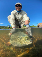 One of the great challenges is that these fish live in fast water, so it is necessary to try to keep the fly and fly line positioned with good drift. This style of fishing asks a lot of our anglers, as they need precision and focus to complete this task. Our anglers need good wading boots to walk through the pools, a 9 foot 6wt rod with floating line, and long leaders of 10 feet from 30lbs to 20lbs test. As far as flies, Pacu will take hopper imitations, weighted nymphs with olive, brown, and orange rubber legs, and a variety of sinking and floating fruit flies.