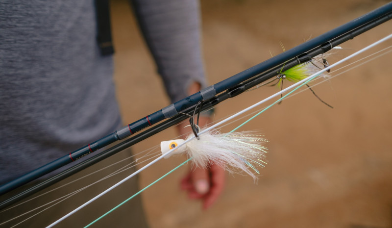 Streamers de tamanho grande e cores escuras que imitam peixes feridos, como "Black Magic" e "Red Tail", são ideais para esta espécie. Moscas com anzóis em tandem são recomendadas para garantir uma melhor taxa de fisgadas.