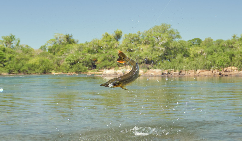 Bicudas favor fast currents, shallow flats, and deep pools, striking violently at poppers and streamers. They average between 4 and 10 pounds, but their lightning speed makes them feel much larger when hooked.