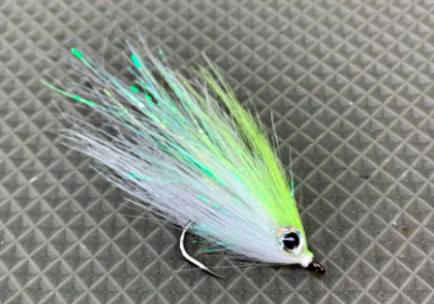* The Clouser Minnow will work very well. Light color variations with a little flash tail. The synthetic pattern is stronger for the toothy species.